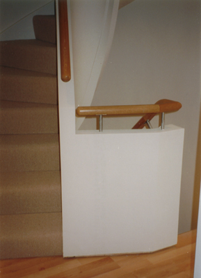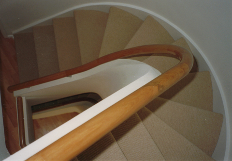 The staircase originally a bit dull was brought up to date by moulding a almost shell shaped bannister topped off with a 50mm oak handrail set on stainless steel stanchions.